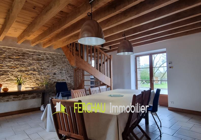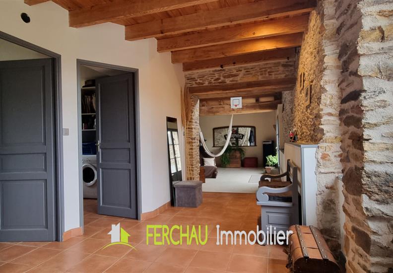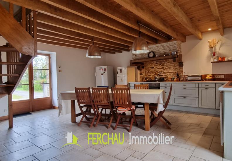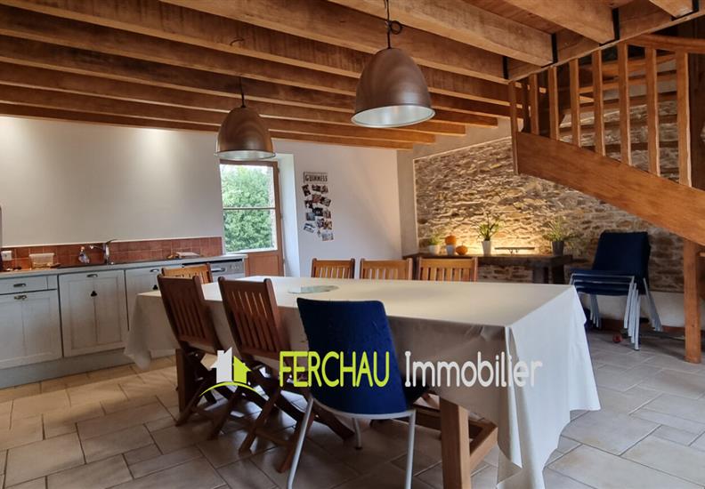 Charmante longère entièrement rénovée, située dans un environnement calme et agréable, sur un terrain arboré de 1 417 m². Elle se compose d'une spacieuse pièce de vie lumineuse, d'une cuisine aménagée et équipée de 37 m², buanderie fonctionnelle, 2 chambres et une possibilité d'en faire une 3ème au niveau de la mezzanine, salle d'eau au rez de chaussée, point d'eau à l'étage avec WC et lavabo. La surface permet également d'y insérer une douche. A l'extérieur, vous profiterez de nombreuses dépendances offrant un fort potentiel : garage de 54 m², préau et carport, idéals pour le stationnement et le stockage. Un four à pain, un puits et une autre petite dépendance complètent l'ensemble. Un bien alliant charme de l'ancien et confort moderne, parfait pour une vie paisible à la campagne. LES ATOUTS : Au calme en impasse, Maison "Coup de Coeur", de beaux espaces de vie, exposition Sud sans vis-à-vis, assainissement aux normes, raccordée à la fibre, électricité aux normes. Pour plus de renseignements demandez Karen FERCHAU. www.ferchau-immobiier.fr https://www.facebook.com/ferchauimmobilier.fr https://www.instagram.com/ferchau_immobilier/ (4.48 % honoraires TTC à la charge de l'acquéreur.)