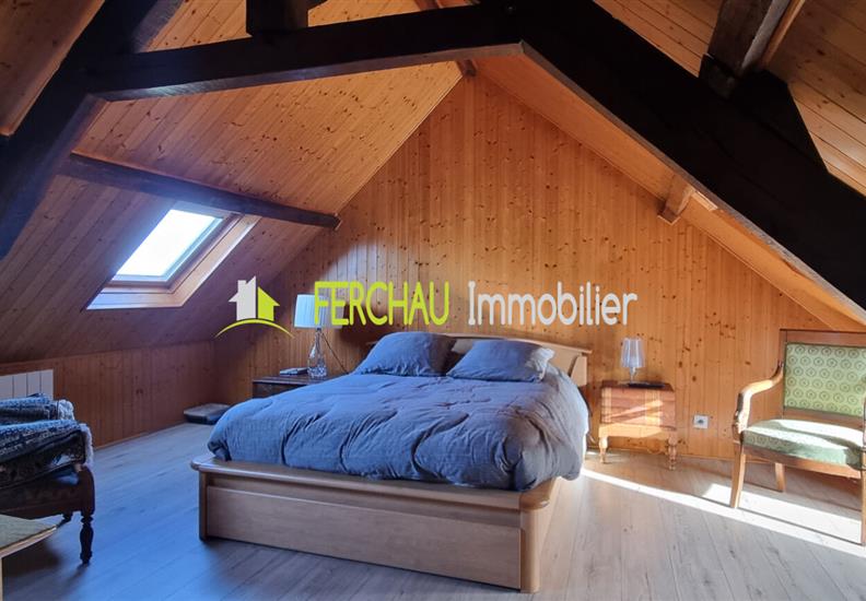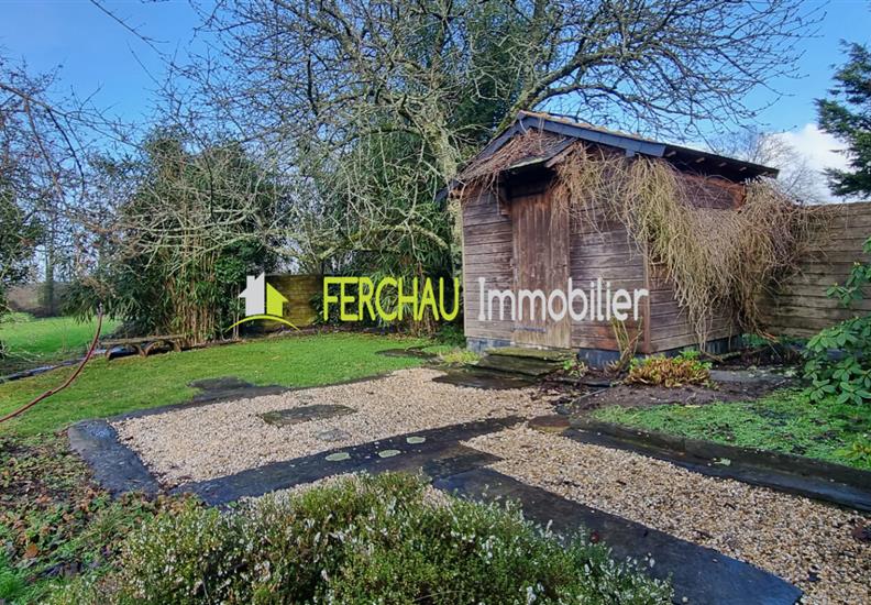 Un grand garage d'une surface de 32 m² équipé en électricité ainsi qu'un atelier et chalet de jardin complètent ce bien.