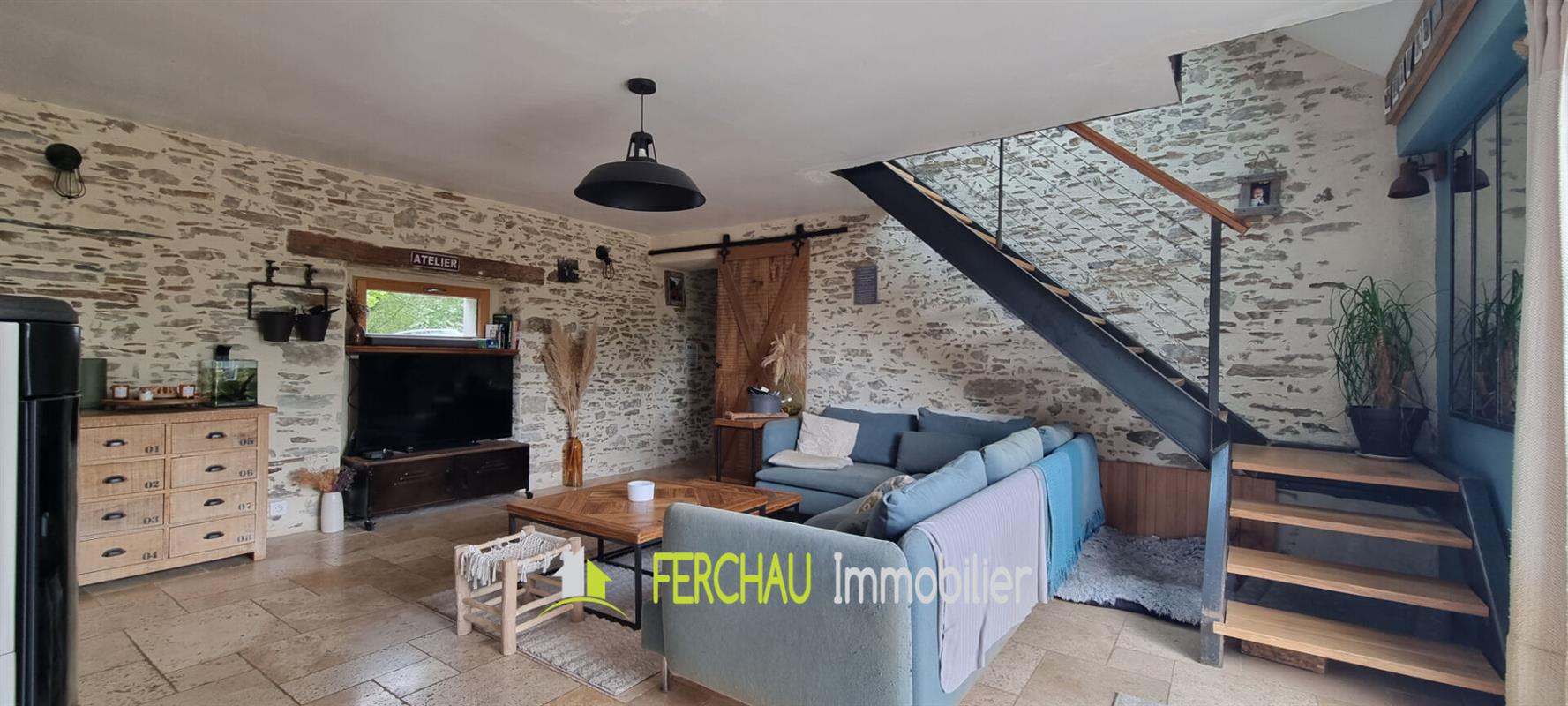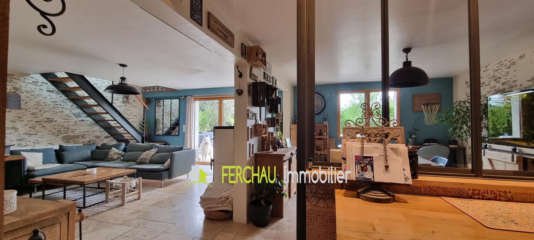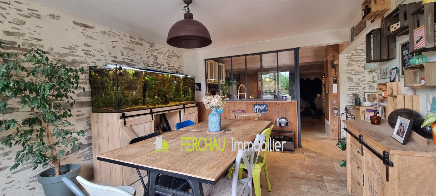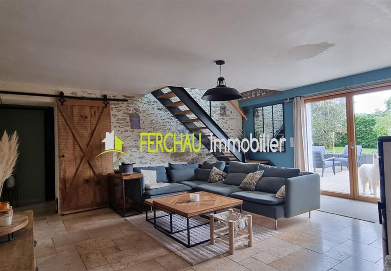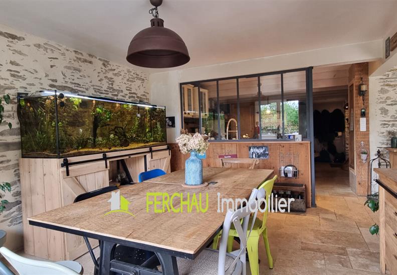 A 4 mins en voiture du Bourg de Joué sur Erdre, maison avec beaucoup de cachet entièrement rénovée avec des matériaux de qualité qui font refléter le côté unique et authentique de cette maison.