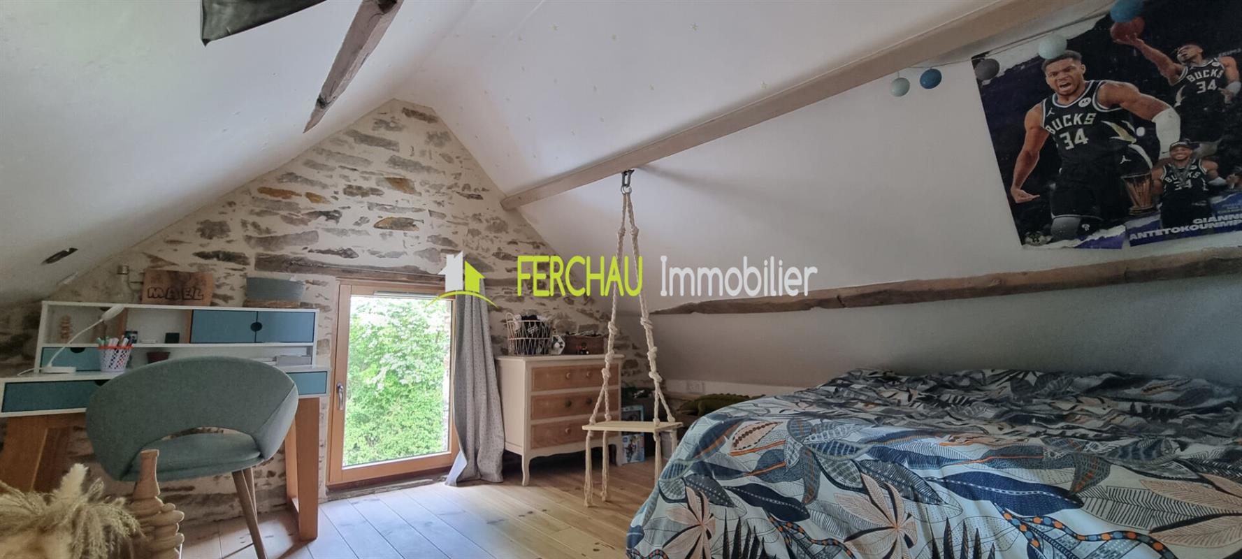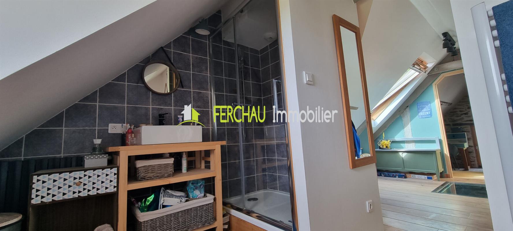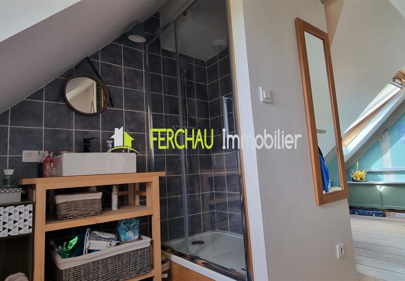 A l'étage vous arriverez sur un espace mezzanine pouvant servir de salle de jeux pour les enfants ou d'espace bureau, 2 chambres, salle d'eau et WC.